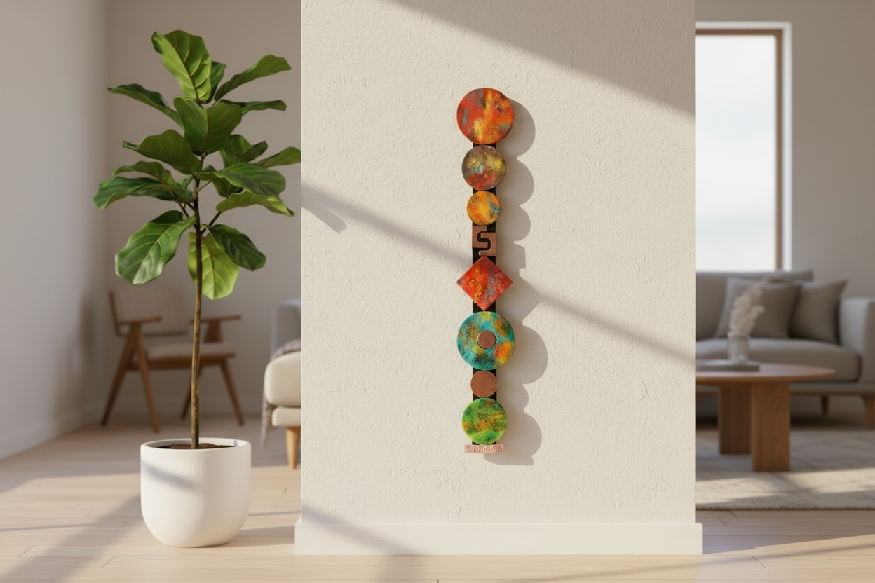 Multi colored enameled copper components. Approximately 32" length by 5" width